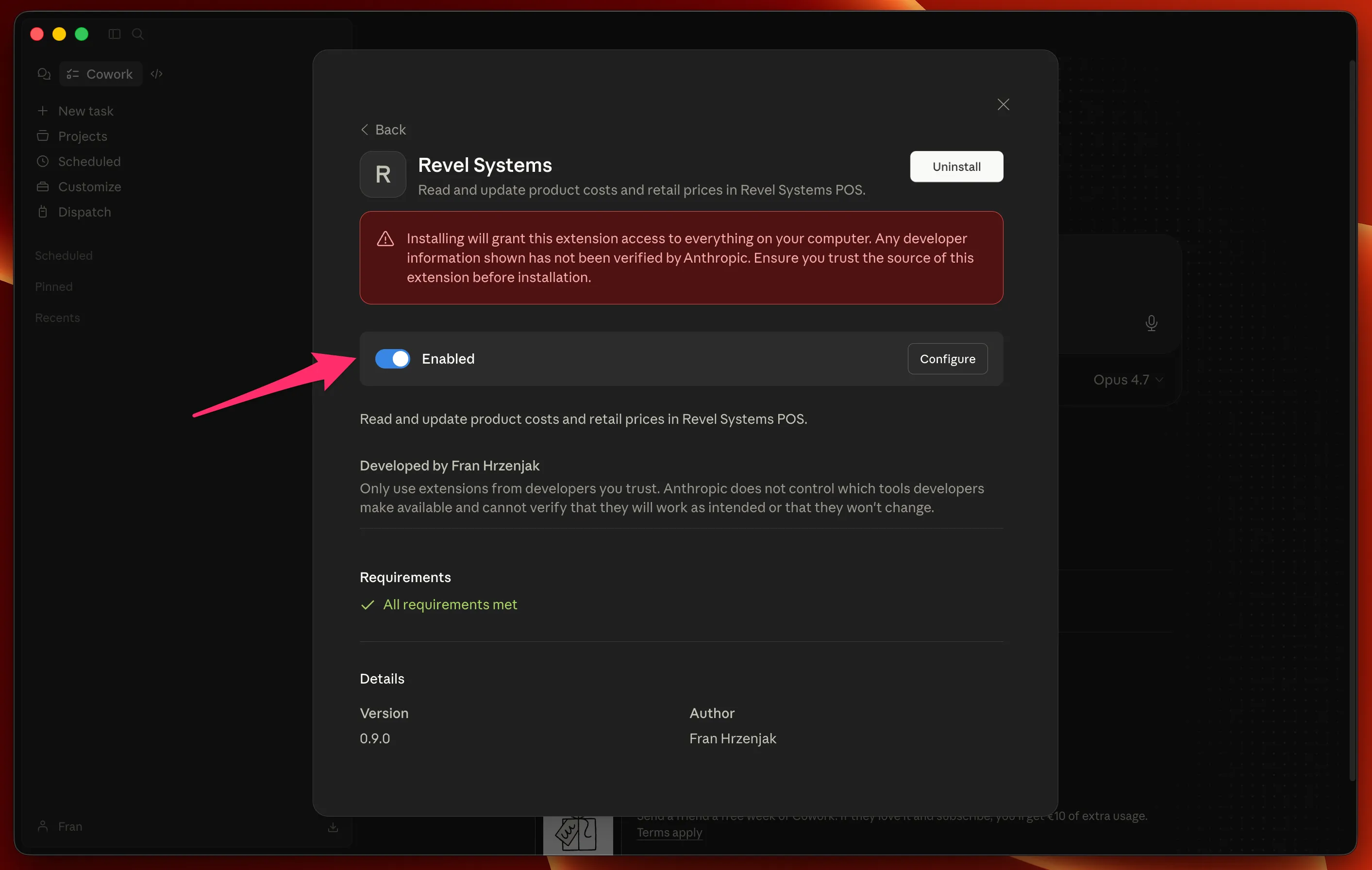 The intended workflow is end-to-end: supplier invoices arrive by email, Claude extracts the line items and new cost prices, and this MCP pushes the updates into Revel in a single batch. The model drives the whole thing; this project is the bridge between the model and the POS.